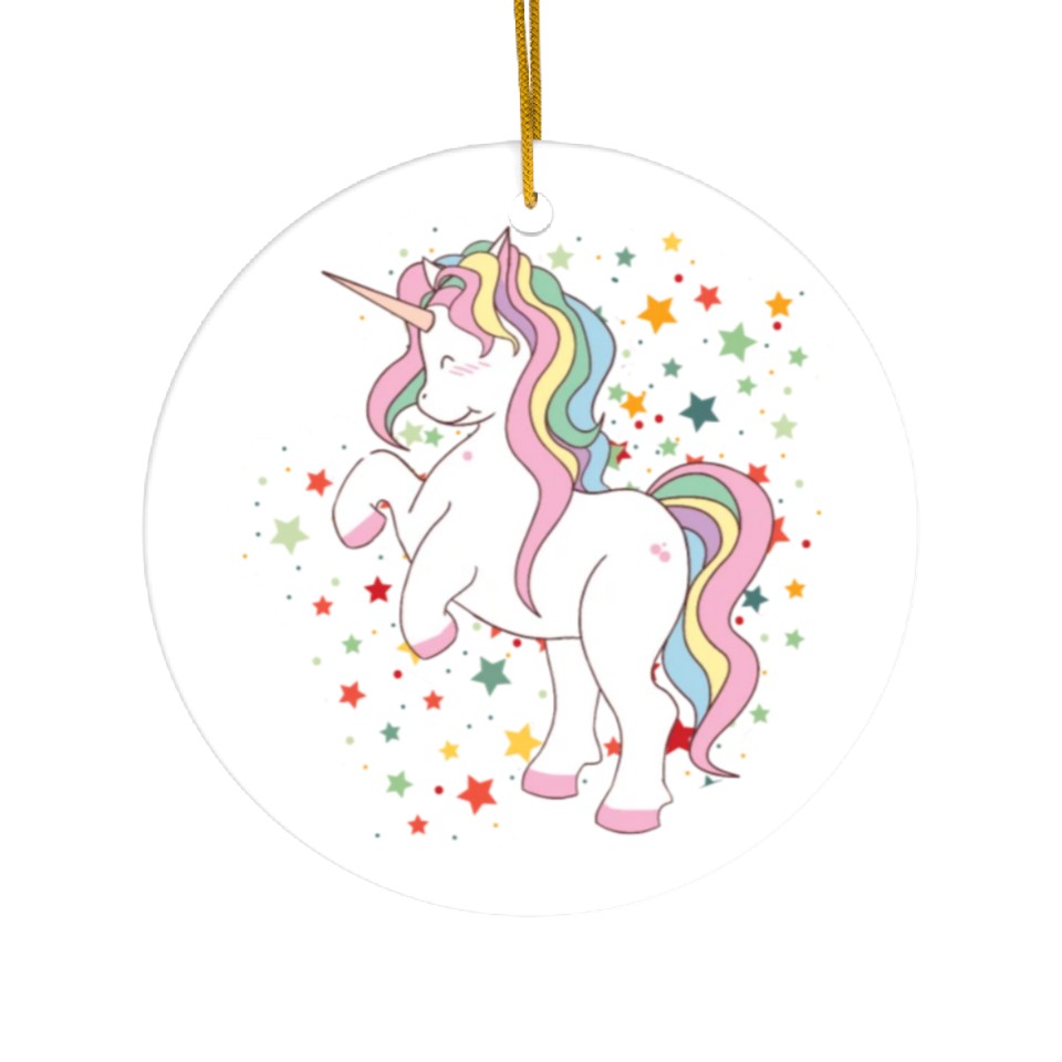 The product unique design you searched for is Cute Rearing Rainbow Unicorn Falling Stars Ceramic Ornaments For WHITE belong theme Ceramic Ornaments at Printblur