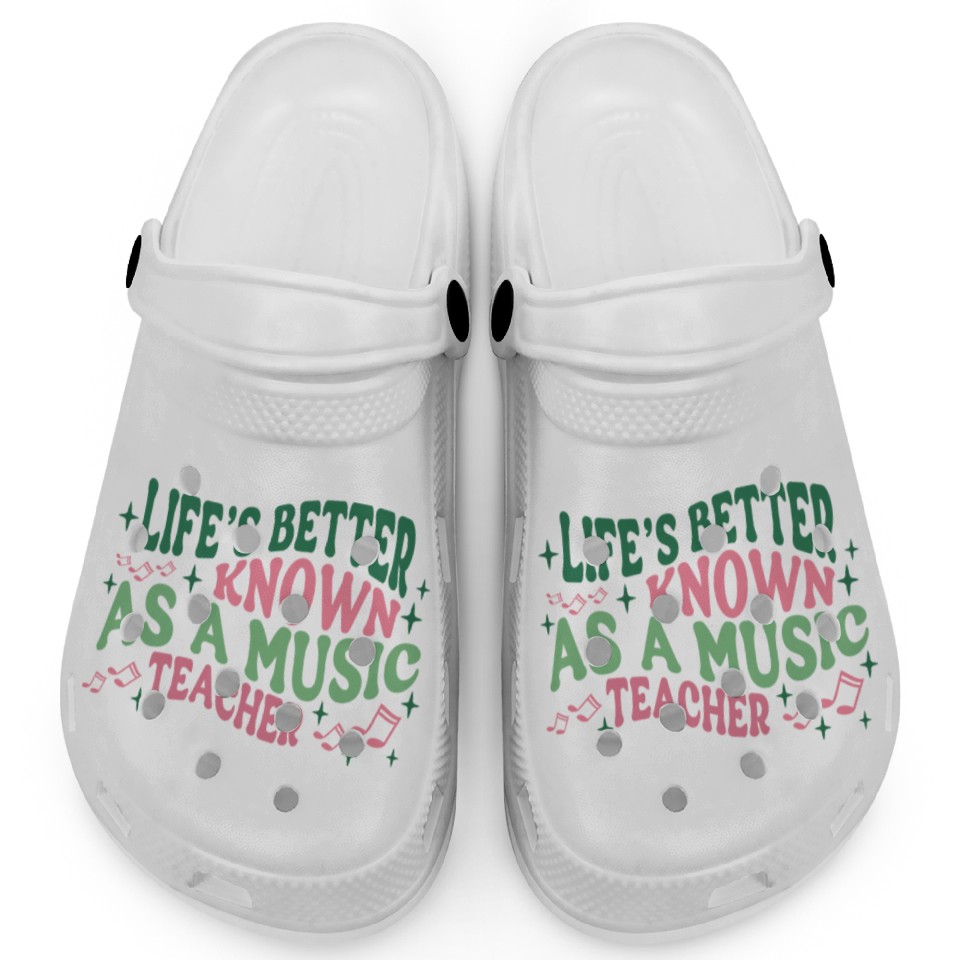 You're looking at the eye-catching product Cute Retro Music Teacher Clogs Gift For Kids WHITE belong theme Clogs at Printblur