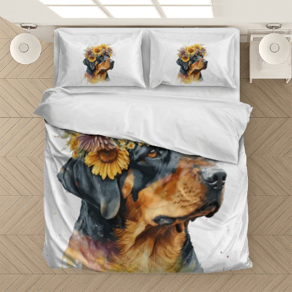 Shop for impressive Cute Rottweiler Sunflower Dog Breed Pet Puppy Bedding Sets or see more Bedding Sets products right now on Printblur to enjoy your happiness!
