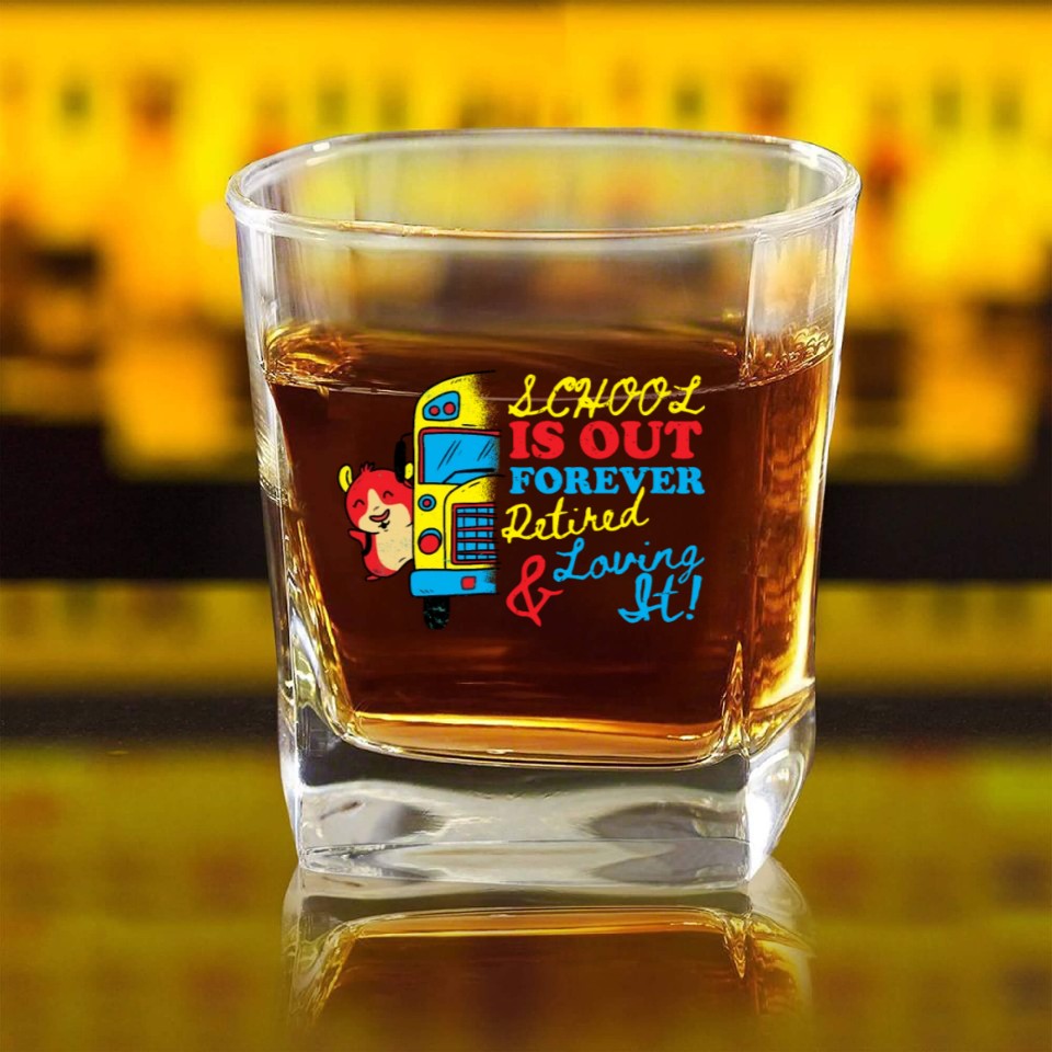 You're looking at the eye-catching product Cute School Is Out Forever Love It Retired Teacher Square Whiskey Glasses For belong theme Square Whiskey Glasses at Printblur