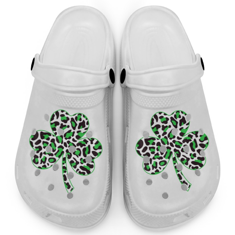 You are seeing a unique and impressive product Cute Shamrock Leopard Print St Patricks Day Irish Clogs For Kids WHITE belong theme Clogs at Printblur