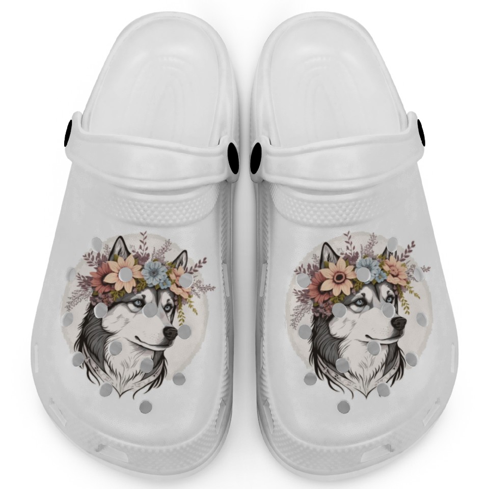 Cute Siberian Husky Flower Crown Pet Dog Breed Flo Clogs