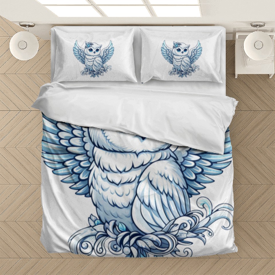 Buy eye-catching Cute snowy owl blue eyes angel wings cartoon Bedding Sets or see more Bedding Sets products at Printblur shop now to explore many surprises from our shop!