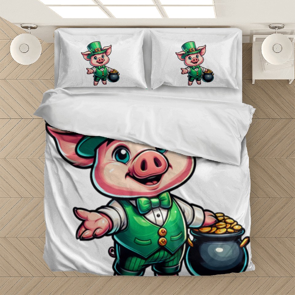 You're looking at the eye-catching product Cute St. Patrick's Piglet Bedding Sets For WHITE belong theme Bedding Sets at Printblur