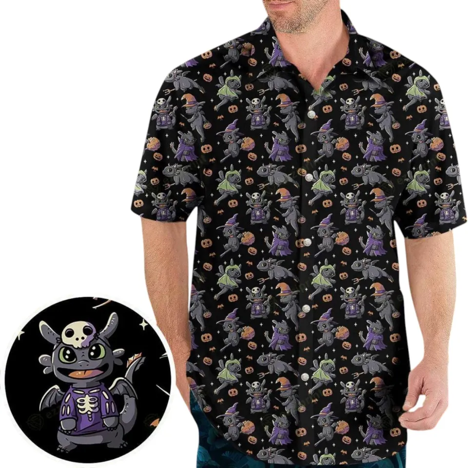 Shop for attractive Cute Toothless Halloween Pattern Hawaiian Shirt, Funny Aloha Shirts for Men or see more Hawaiians products on https://printblur.com right now!