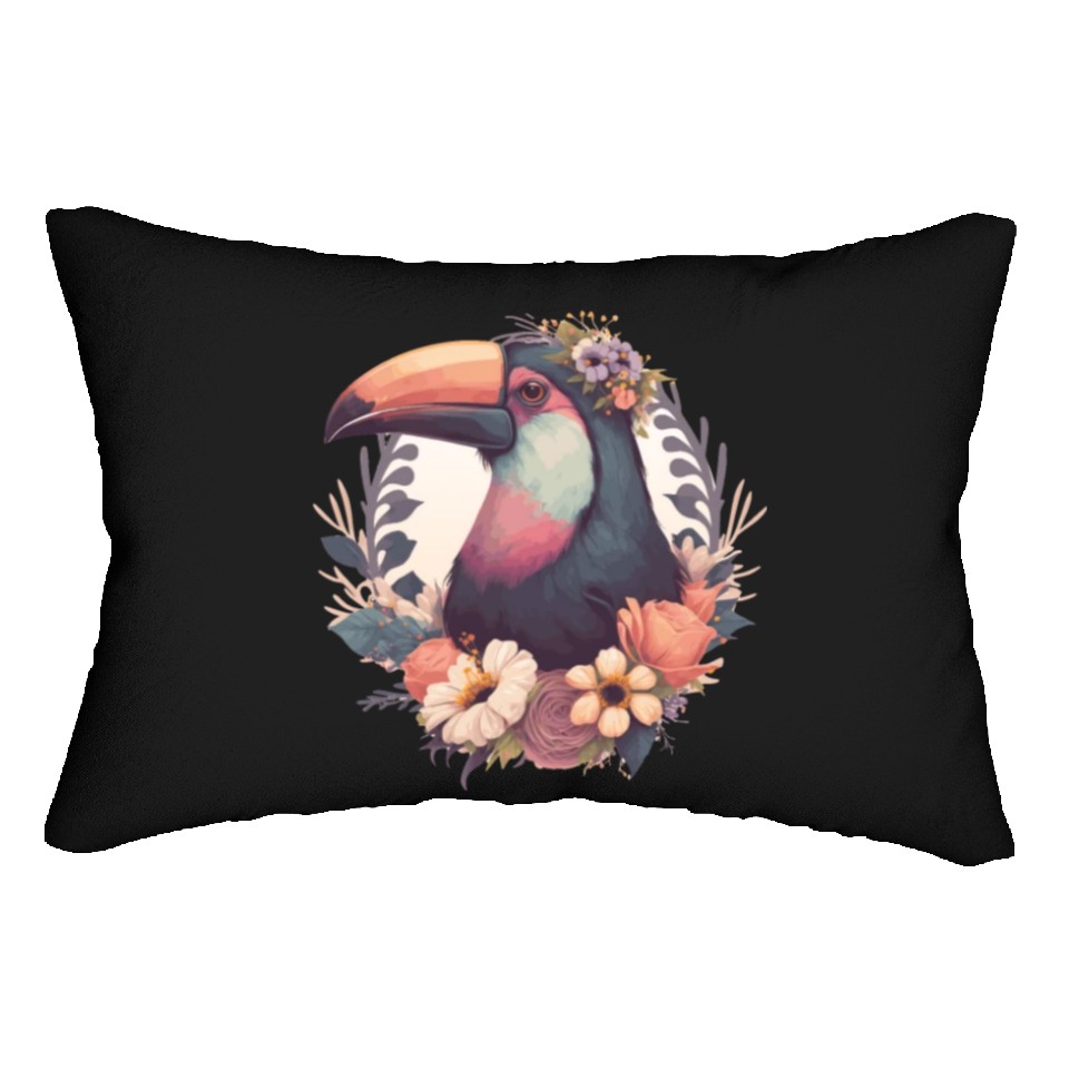 You're searching for a one-of-a-kind product Cute Toucan Tropical Bird Flower Crown Jungle Bird Lumbar Pillows For Black belong theme Lumbar Pillows at Printblur