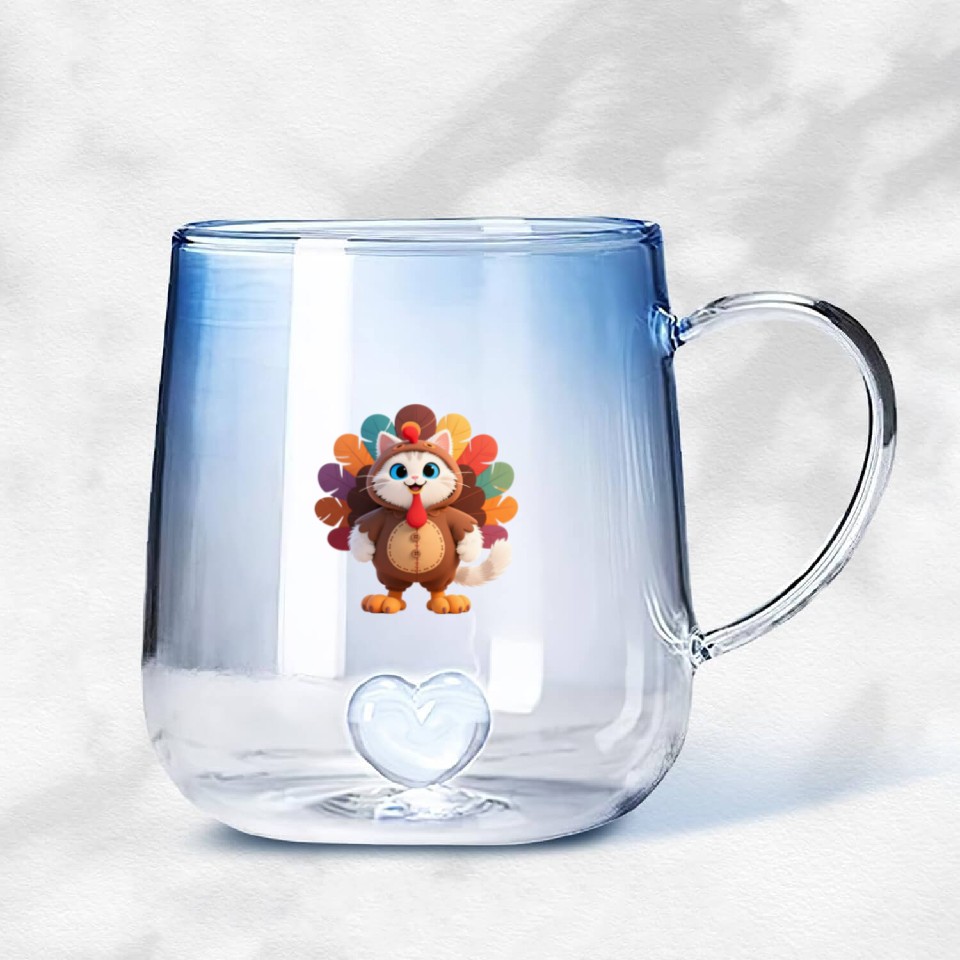 You're taking a peek at the product Cute Turkey Cartoon Costume "Aniverse Cats" Gradient Glass Mugs For Blue belong theme Gradient Glass Mugs at Printblur