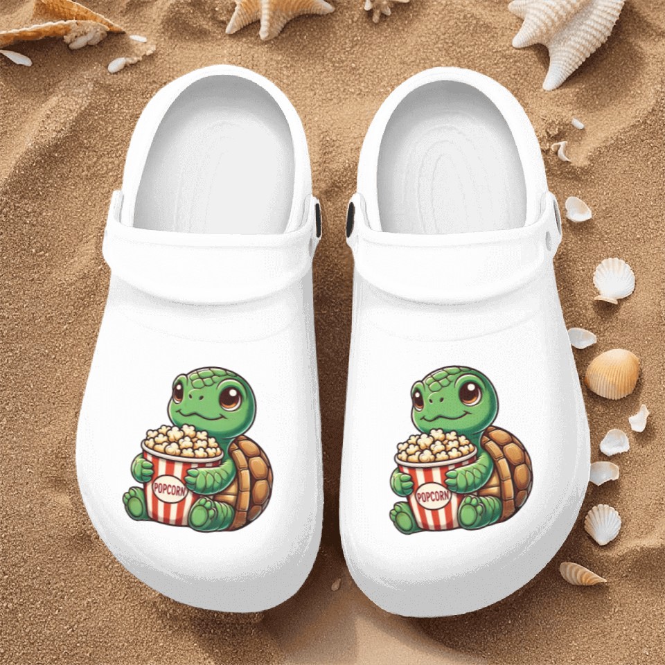 You're searching for a one-of-a-kind product Cute turtle popcorn movies cinema fun Nurse Clogs For Men WHITE belong theme Nurse Clogs at Printblur