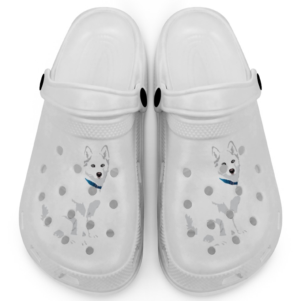 The product unique design you searched for is Cute White Siberian Husky Sweet White Snow Dog Clogs For Kids WHITE belong theme Clogs at Printblur