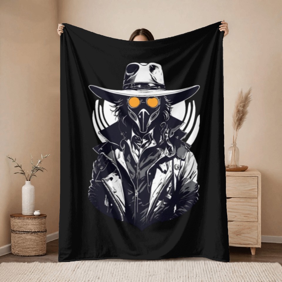 You're taking a peek at the product Cyberpunk Cowboy - A Weird Wild West Fusion Throw Blankets For Black belong theme Throw Blankets at Printblur