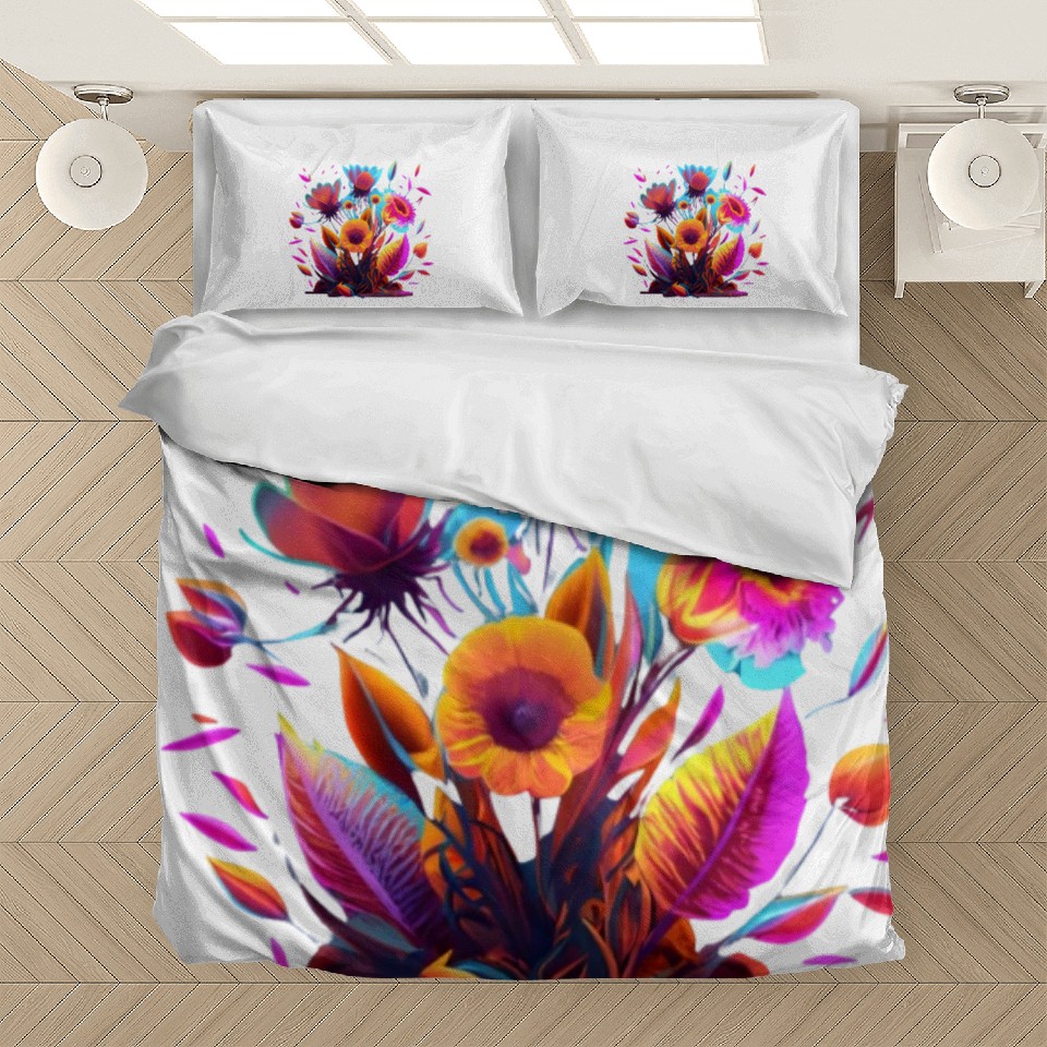 You are viewing an exclusive and elegant product Cyberpunk Neon Glow FlowersDesign Bedding Sets For WHITE belong theme Bedding Sets at Printblur