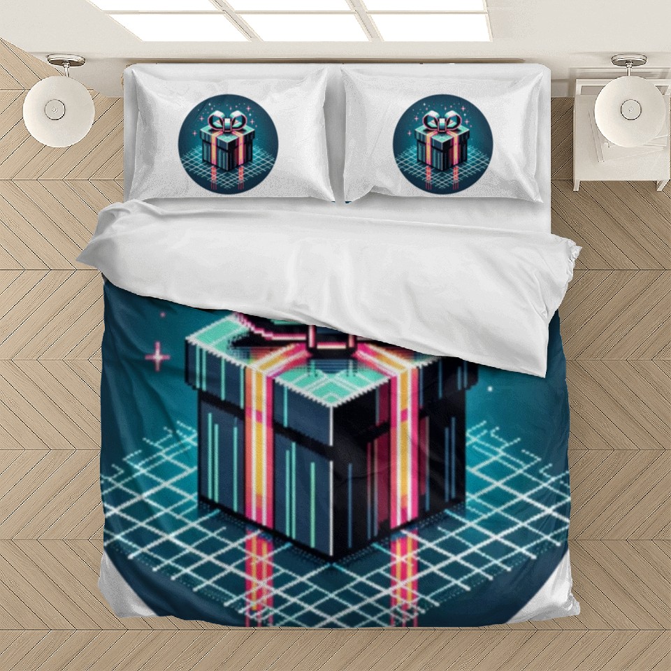 You are seeing a unique and impressive product Cyberpunk Pixel Art Gift Box - Neon Ribbons Bedding Sets For WHITE belong theme Bedding Sets at Printblur