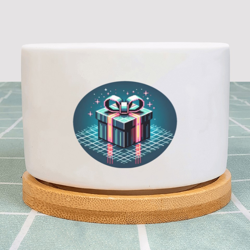 Cyberpunk Pixel Art Gift Box - Neon Ribbons Plant Pots