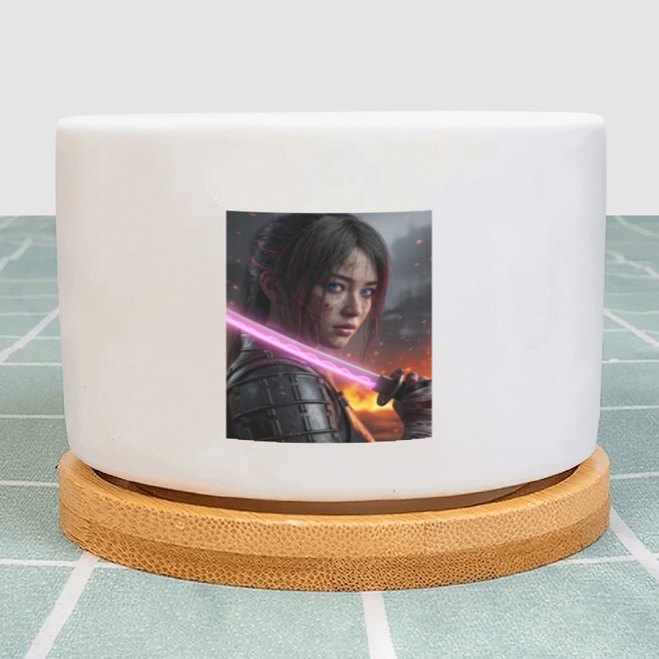 You are viewing an exclusive and elegant product Cyberpunk Samurai Girl Plant Pots For WHITE belong theme Plant Pots at Printblur
