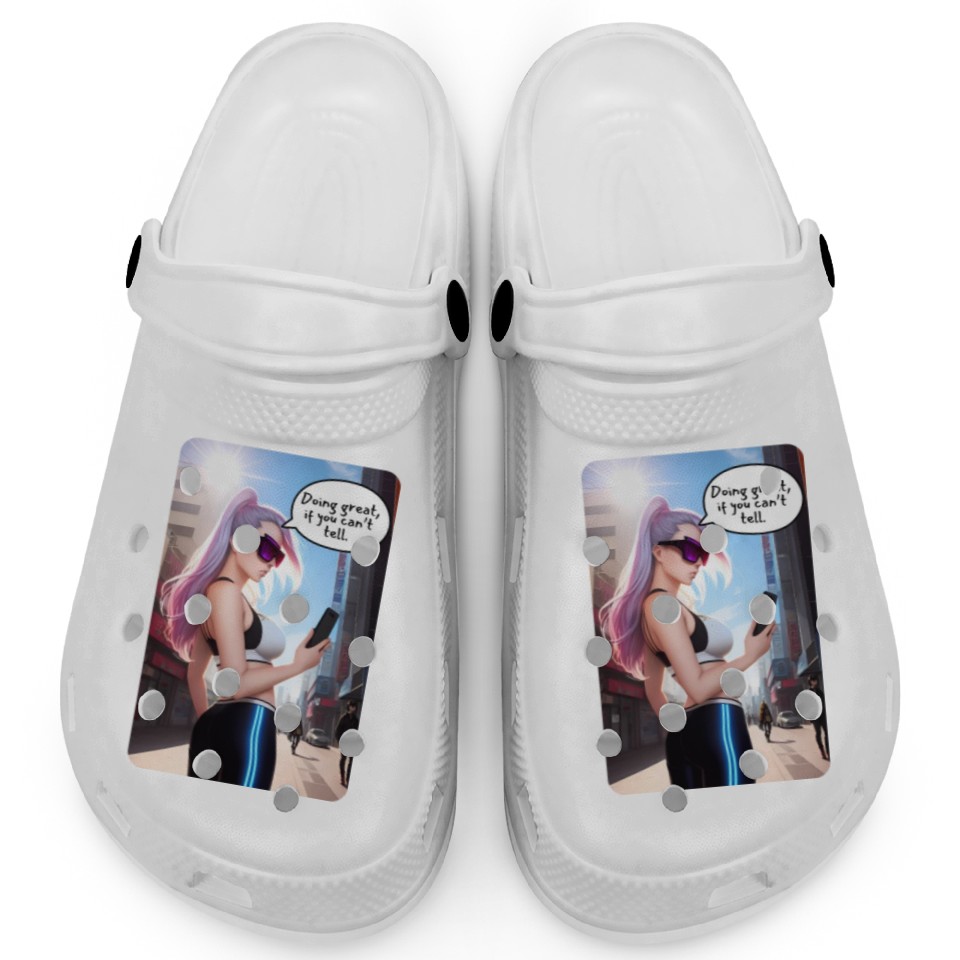 You're looking at the eye-catching product Cyberpunk Waifu Influencer Design 7 Clogs For Kids WHITE belong theme Clogs at Printblur