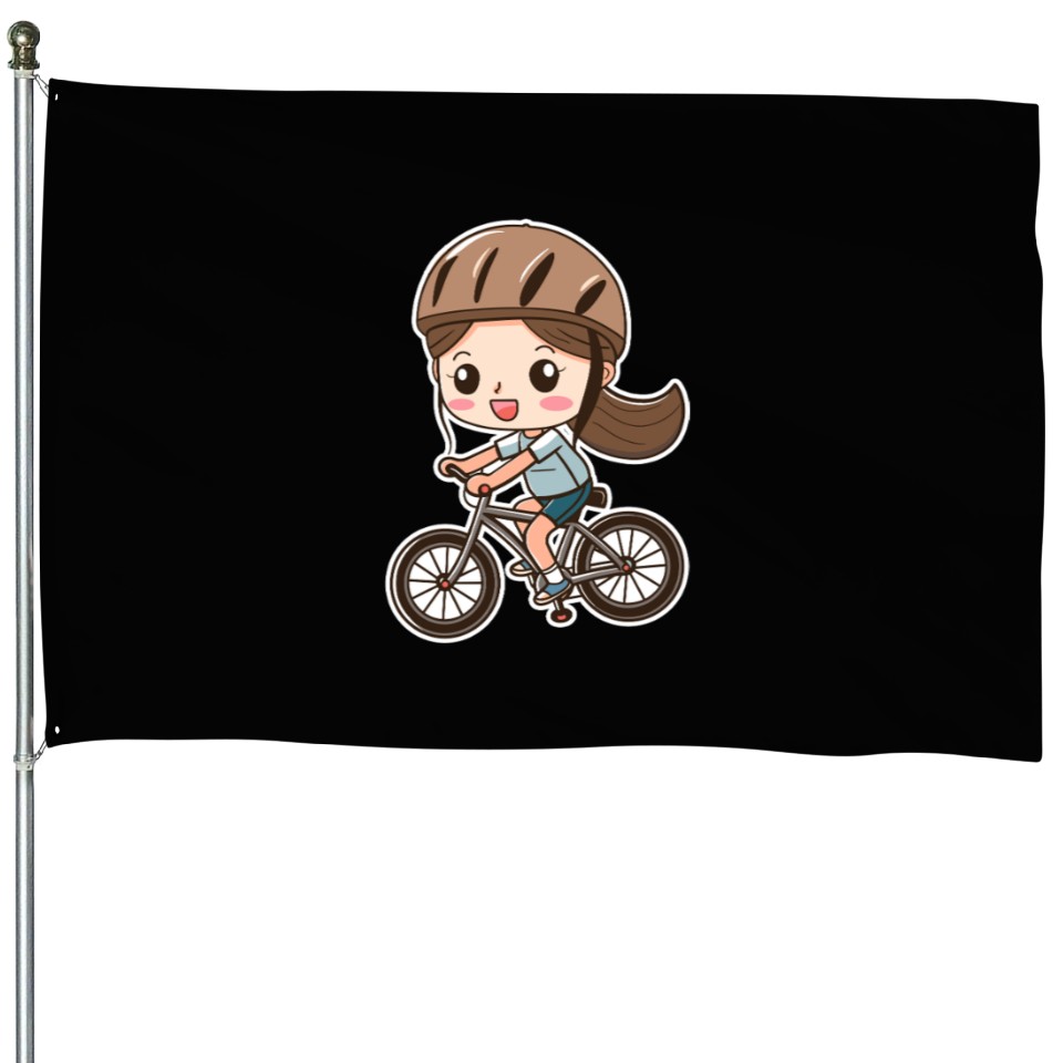 Shop for attractive Cycling Girl Cartoon Style House Flags or see more House Flags products on https://printblur.com right now!