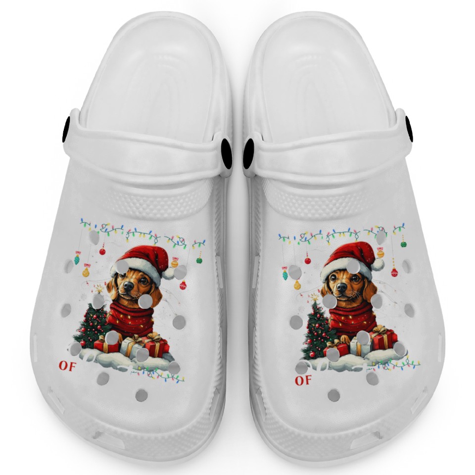You're taking a peek at the product Dachshund Christmas Tree Lights Decorations Dog Clogs For Kids WHITE belong theme Clogs at Printblur