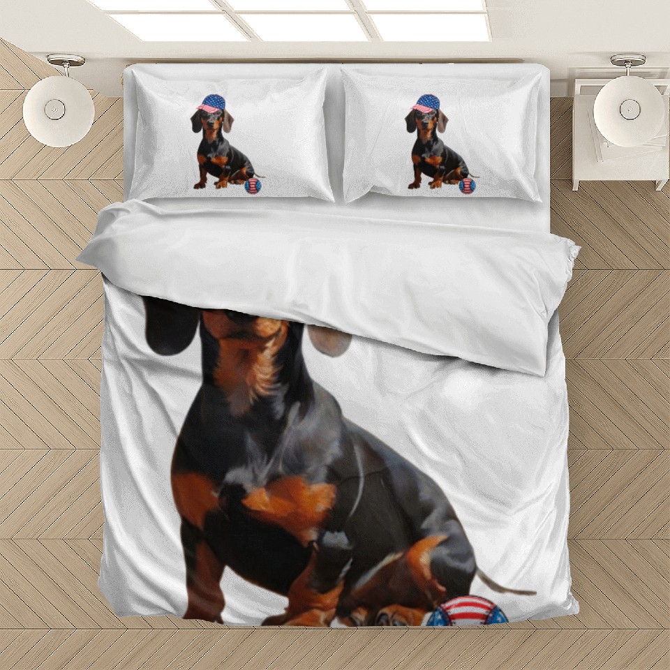 Own fascinating Dachshund dog baseball lover us flag Bedding Sets or see more Bedding Sets products now from Printblur shop to enjoy your shopping time!
