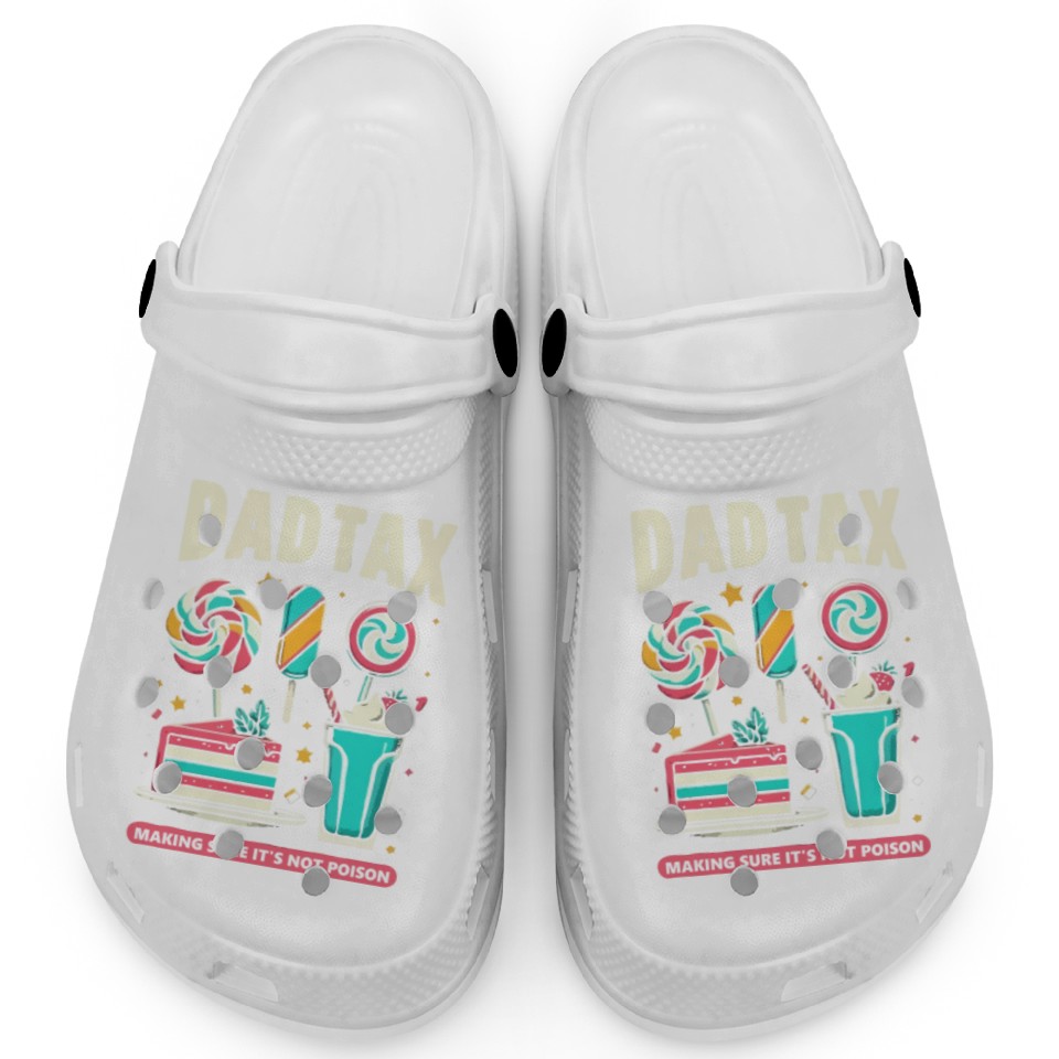 The product unique design you searched for is Dad Tax making sure it's not poison Clogs For Kids WHITE belong theme Clogs at Printblur