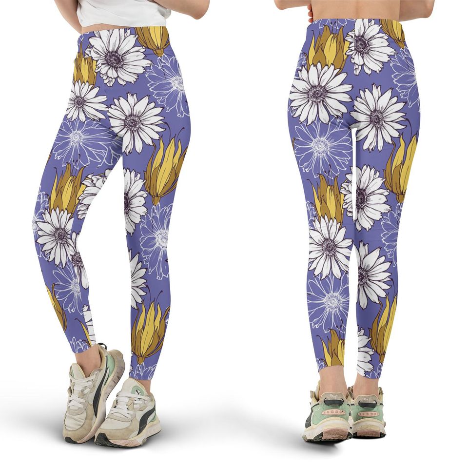 Buy eye-catching Daisy Tulip Leggings, Floral Leggings, Flower Pattern Leggings or see more Leggings products at Printblur shop now to explore many surprises from our shop!