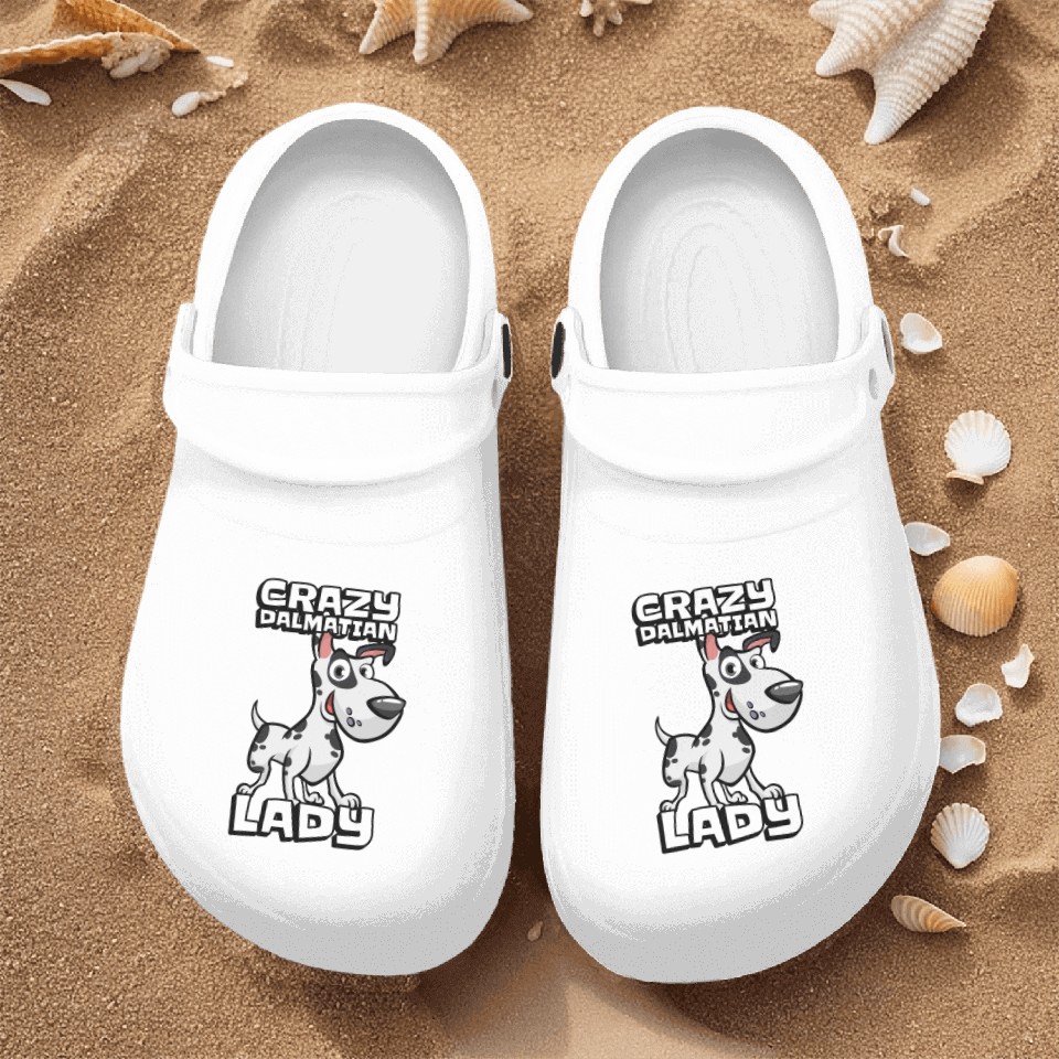 The product unique design you searched for is Dalmatian Crazy Dalmatian Lady Nurse Clogs For Men WHITE belong theme Nurse Clogs at Printblur