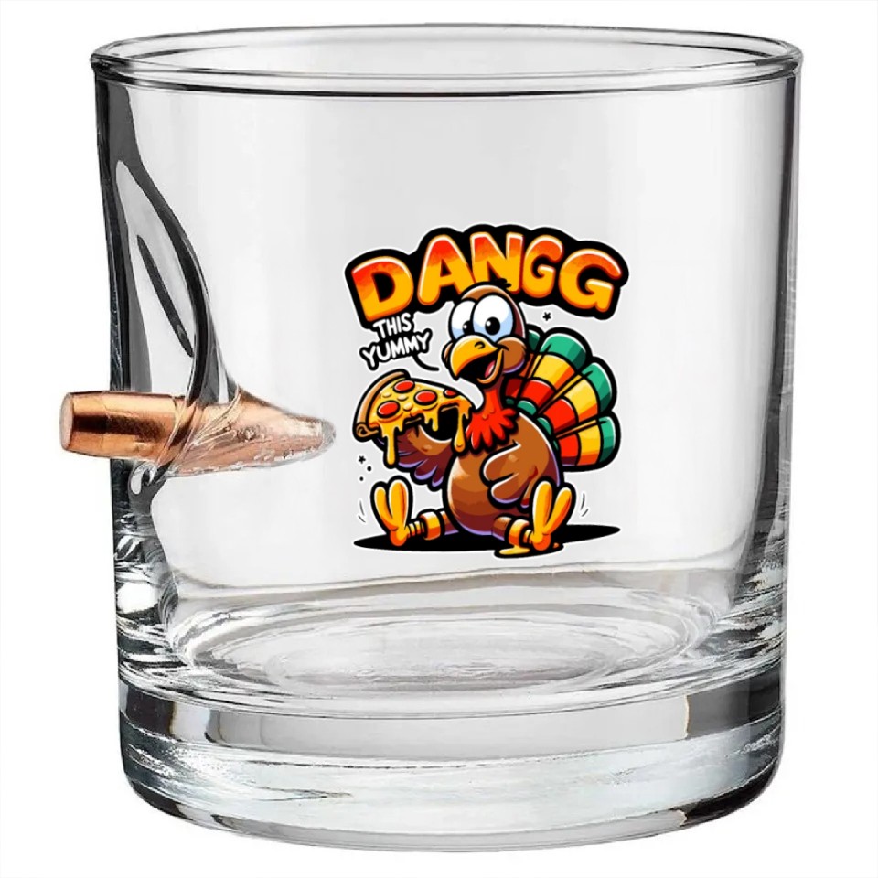 You're taking a peek at the product Dangg This Yummy, Cartoon Turkey Pizza Bullet Whiskey Glasses For belong theme Bullet Whiskey Glasses at Printblur