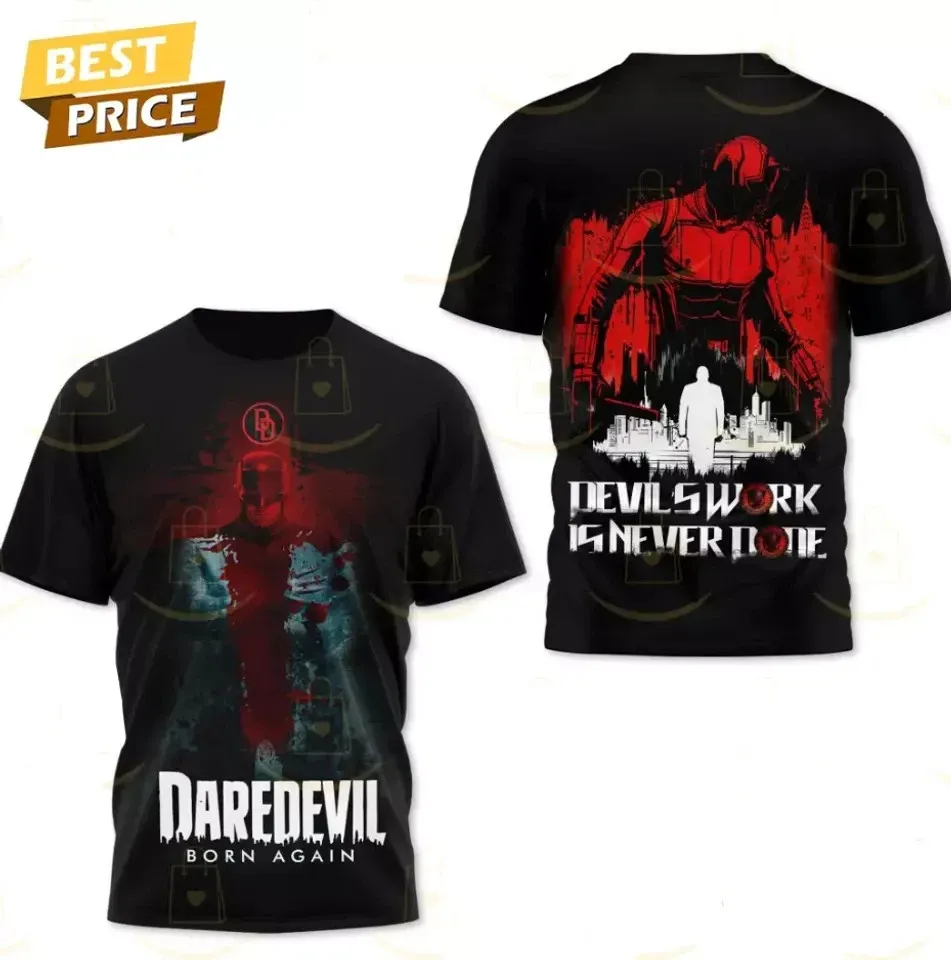 Own fascinating Daredevil Born Again - Devil Work Is Never Done 3D T-Shirt or see more 3D T Shirts products now from Printblur shop to enjoy your shopping time!