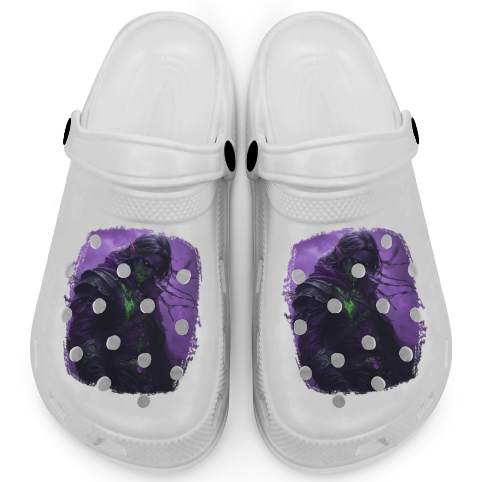 The product unique design you searched for is Dark Elf with Poison Magic and Purple Shadow Power Clogs For Kids WHITE belong theme Clogs at Printblur