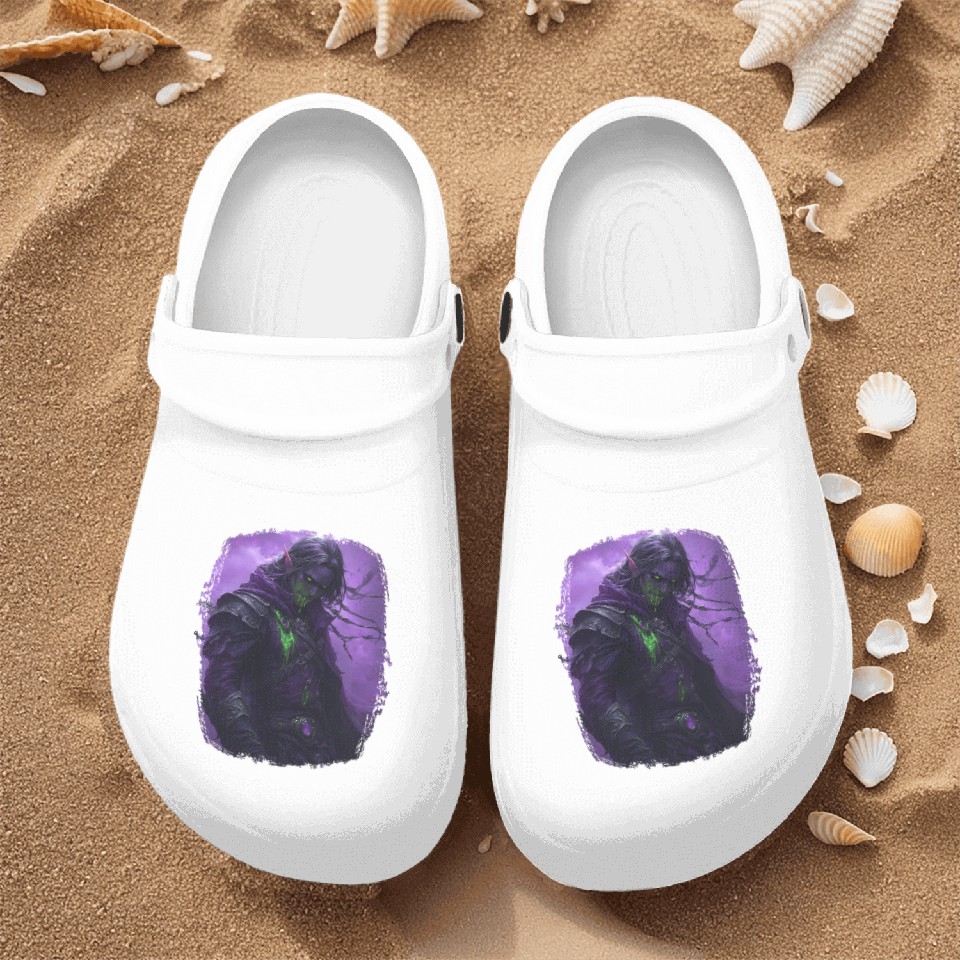 You are contemplating one of the best-selling products Dark Elf with Poison Magic and Purple Shadow Power Nurse Clogs For Men WHITE belong theme Nurse Clogs at Printblur