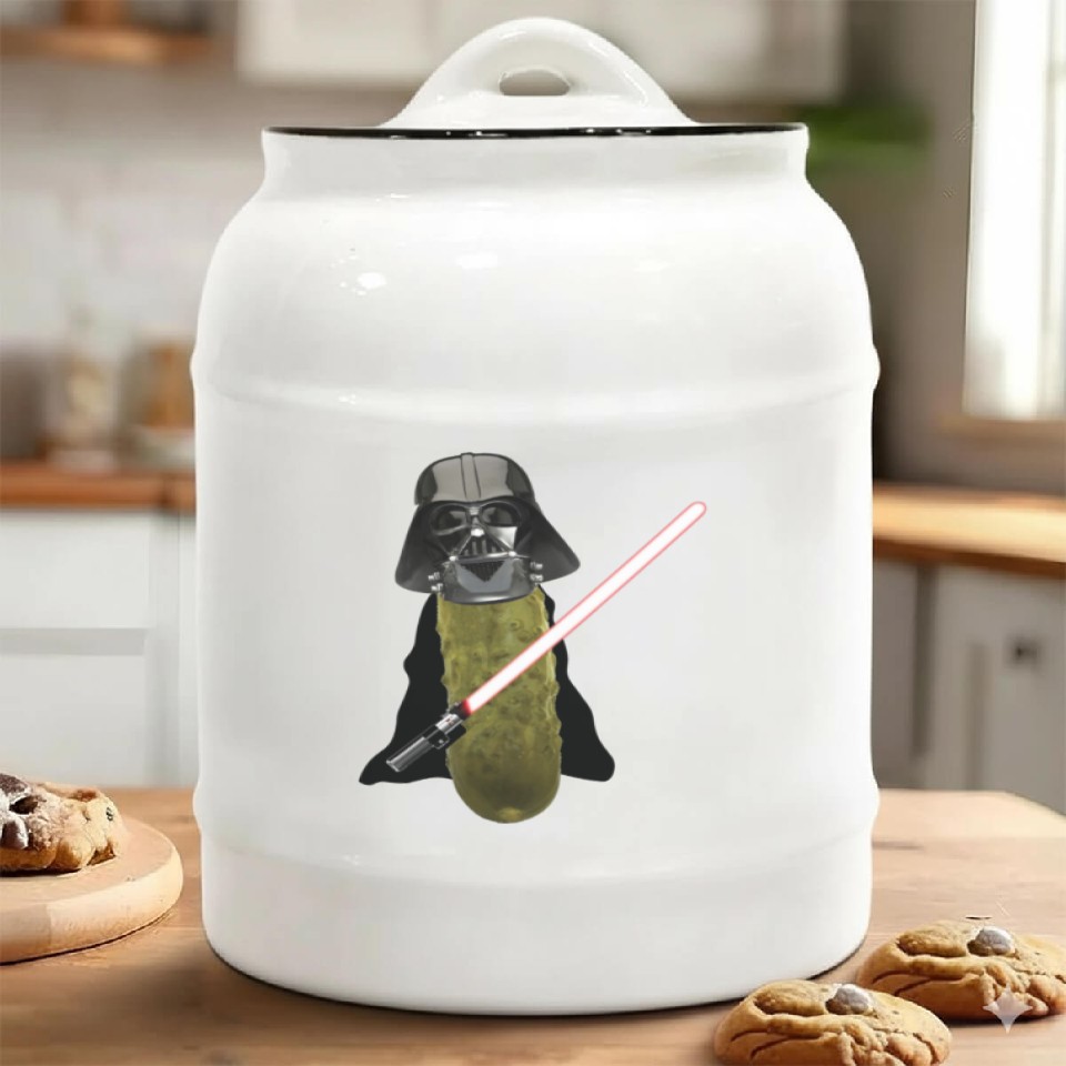 The product unique design you searched for is Darth Pickle Ceramic Cookie Jars For belong theme Ceramic Cookie Jars at Printblur
