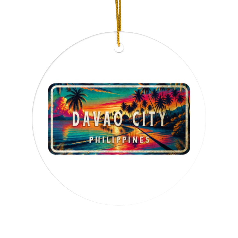 You are seeing a unique and impressive product Davao City - Tropical Retro Ceramic Ornaments For WHITE belong theme Ceramic Ornaments at Printblur