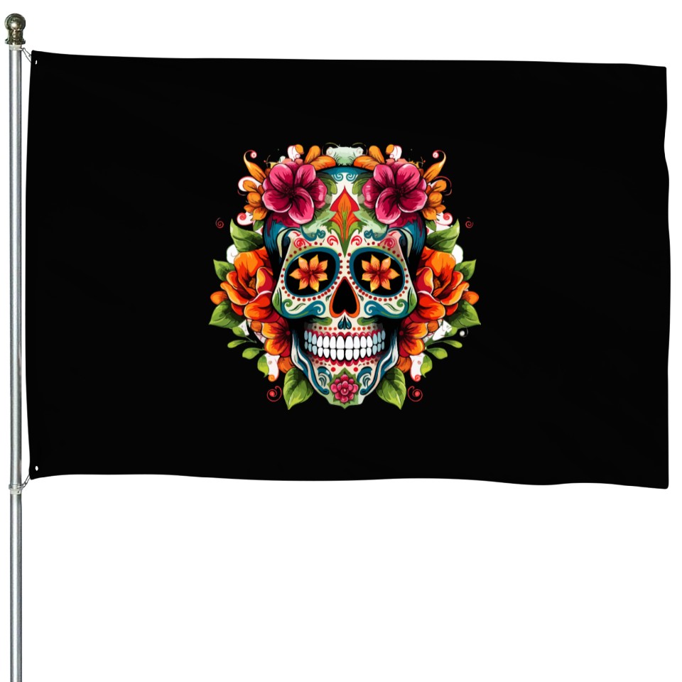 Own fascinating Day of the Dead Iconic Sugar Skull House Flags or see more House Flags products now from Printblur shop to enjoy your shopping time!