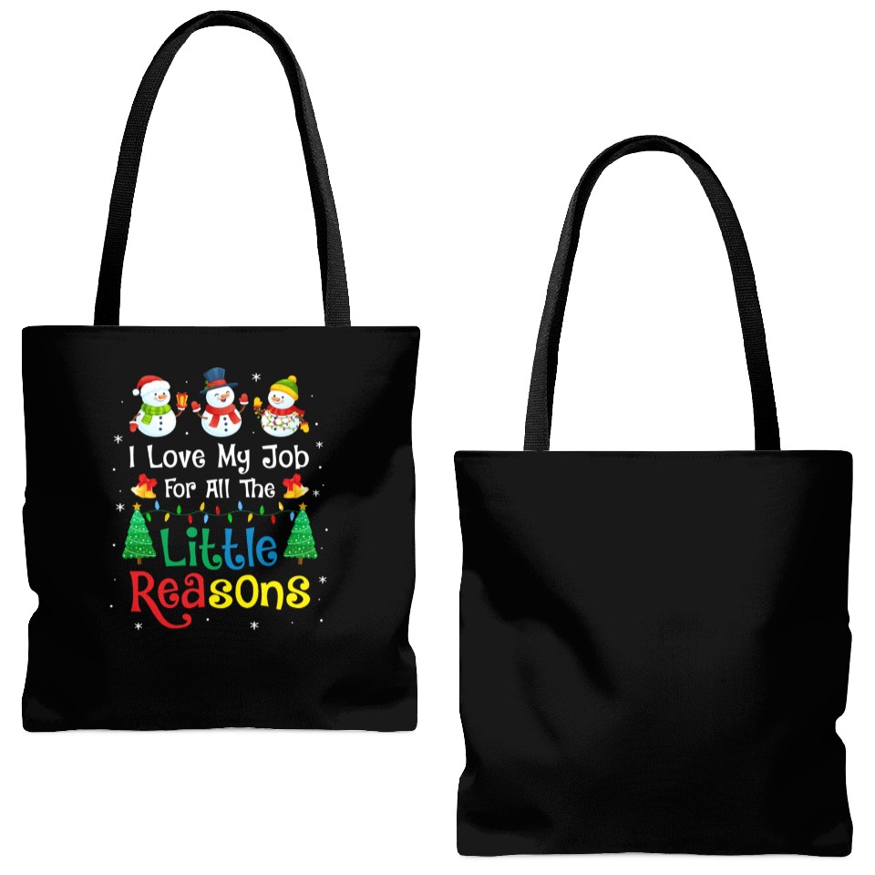 You are viewing an exclusive and elegant product Daycare Teacher Christmas I Love My Job For All Tote Bags (AOP) For Black belong theme Tote Bags (AOP) at Printblur