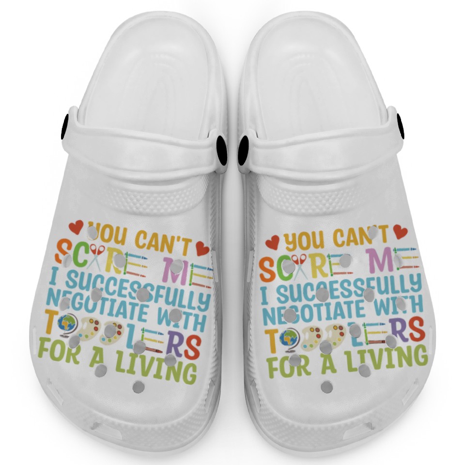 You're searching for a one-of-a-kind product Daycare Teacher Funny Clogs For Kids WHITE belong theme Clogs at Printblur