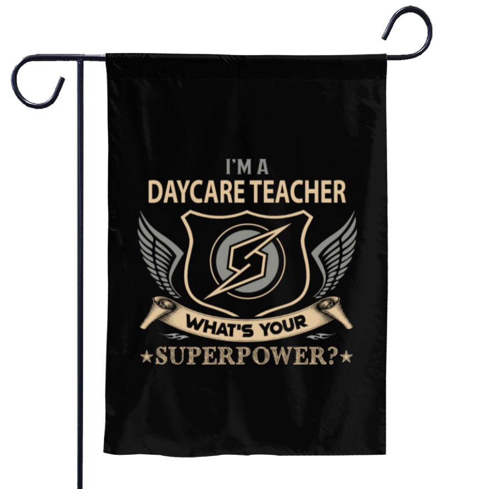 Buy stunning Daycare Teacher Garden Flags - Superpower Job Gift Item or see more Garden Flags products at Printblur right now to receive many amazing discounts!