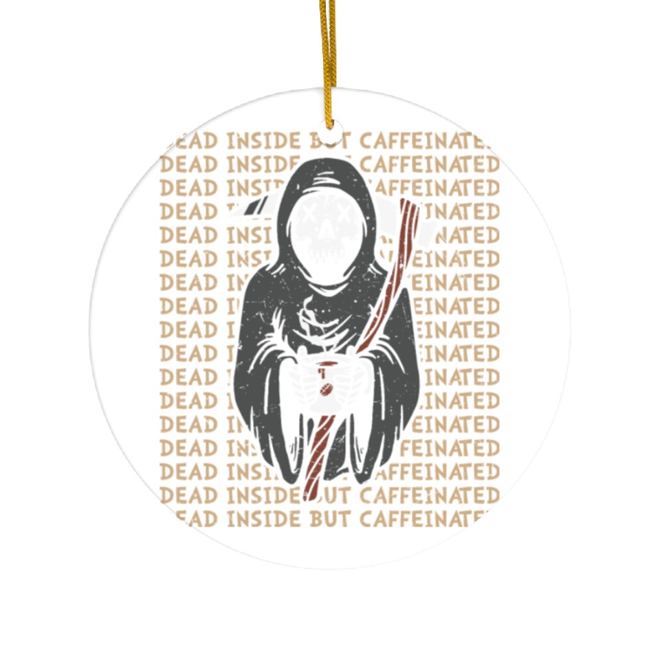 You're searching for a one-of-a-kind product Dead inside but caffinated skull coffee reaper Ceramic Ornaments For WHITE belong theme Ceramic Ornaments at Printblur