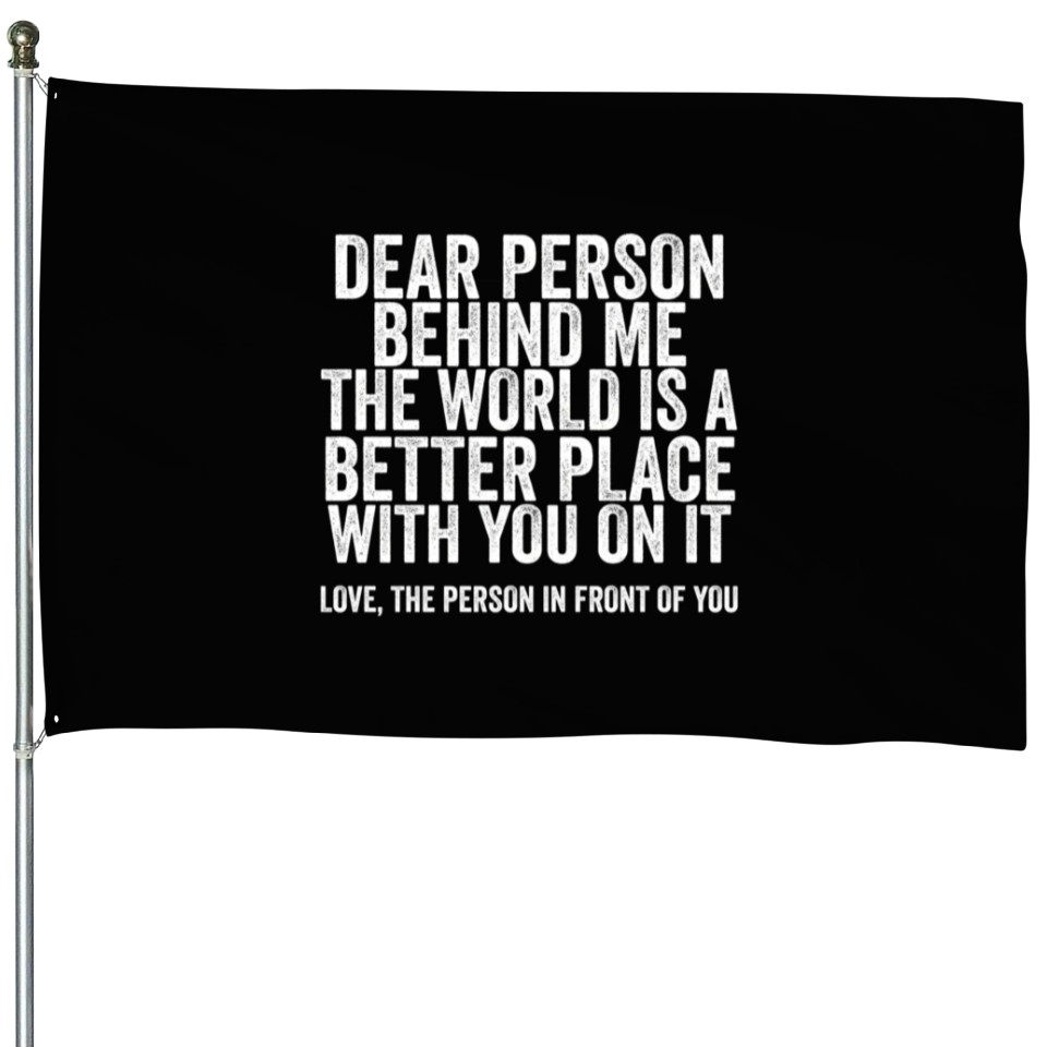 Shop for attractive Dear Person Behind Me The World Is A Better Place House Flags or see more House Flags products on https://printblur.com right now!