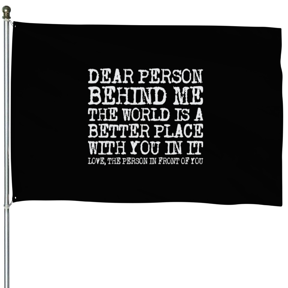 Own fascinating Dear Person Behind Me The World Is A Better Place House Flags or see more House Flags products now from Printblur shop to enjoy your shopping time!