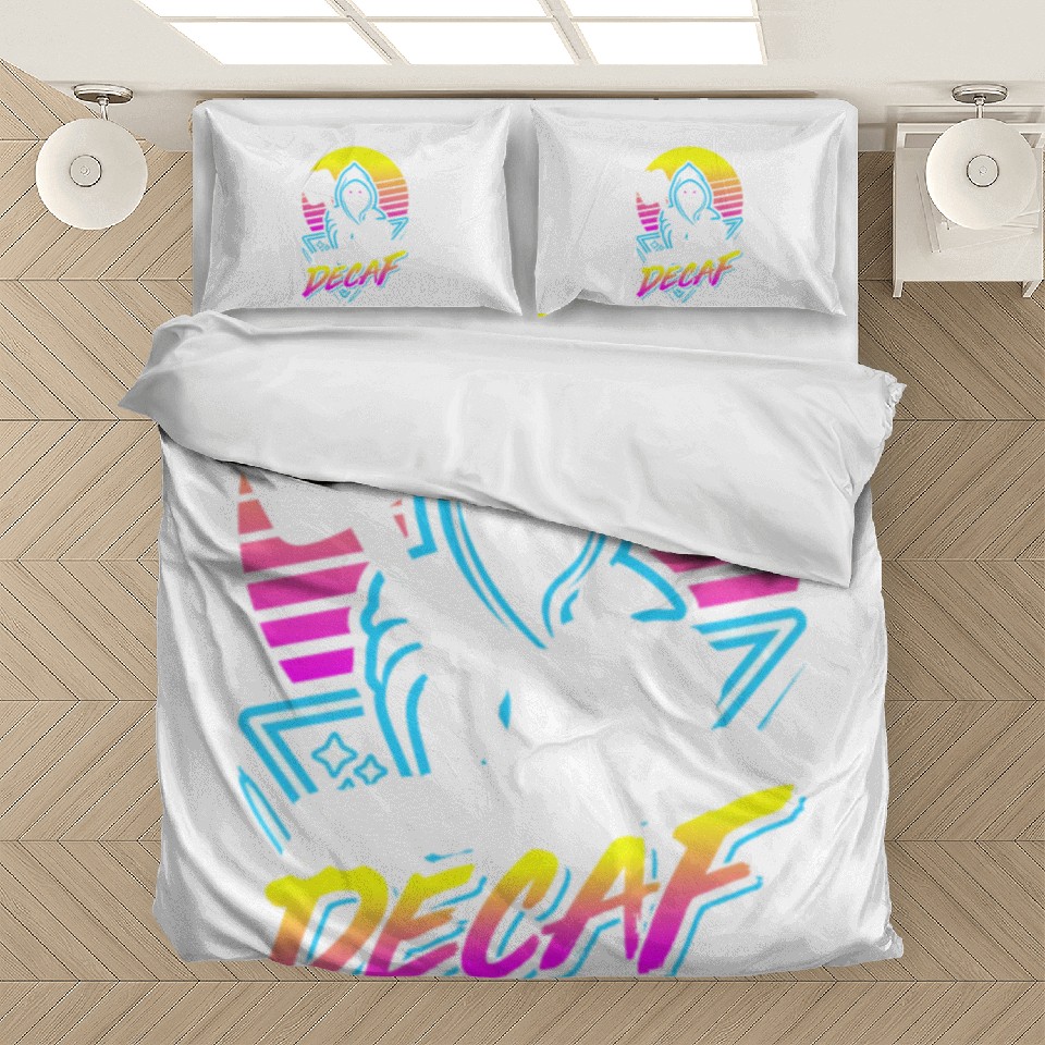 You're looking at the eye-catching product Death Before Decaf (Gym Reaper) Retro Neon Bedding Sets For WHITE belong theme Bedding Sets at Printblur
