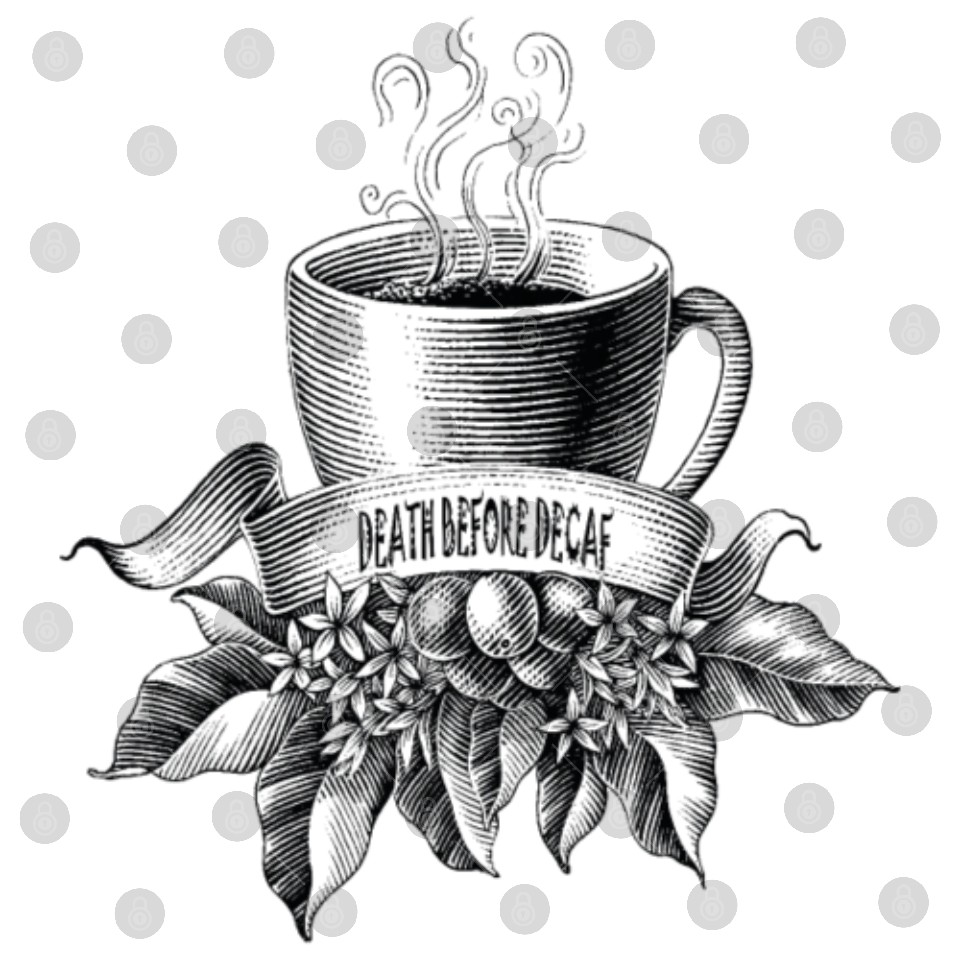 The product unique design you searched for is Death Before Decaf Line Art Digital Files For WHITE belong theme Digital Files at Printblur