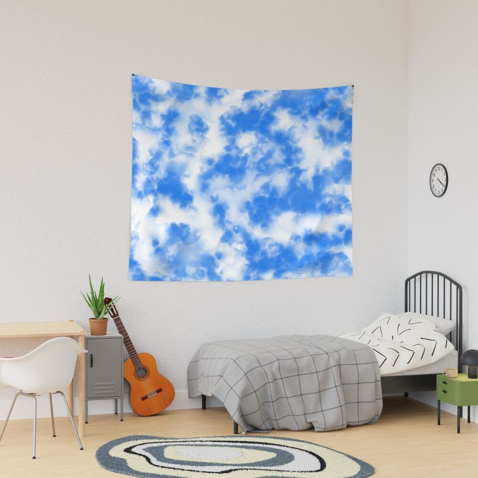 The item hot trend you're looking at is Deep Blue Clouds Tie Dye Tapestry, Retro Tapestry, Back to School Gift Idea, For Decoration, Home and Living For belong theme Tapestries at Printblur