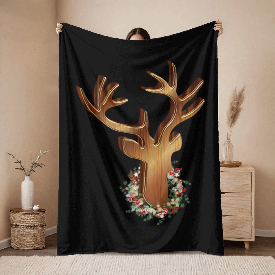 Own fascinating Deer head in wood look with Christmas wreath Throw Blankets or see more Throw Blankets products now from Printblur shop to enjoy your shopping time!