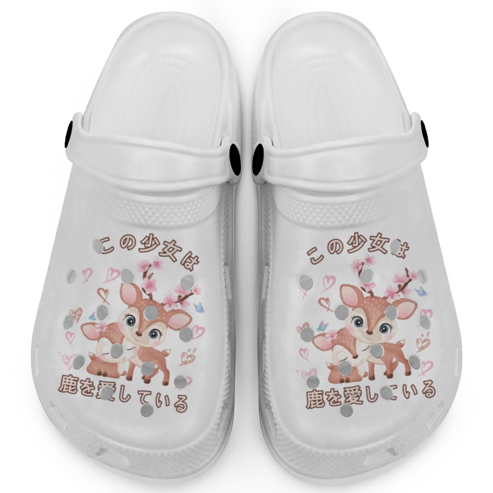 You are seeing a unique and impressive product Deer Love Mom Deer And Baby Youth Clogs For Kids WHITE belong theme Clogs at Printblur