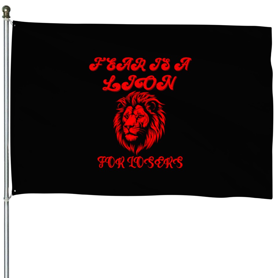 Own fascinating Defeating Fear with Courageous Lion Graphic. House Flags or see more House Flags products now from Printblur shop to enjoy your shopping time!