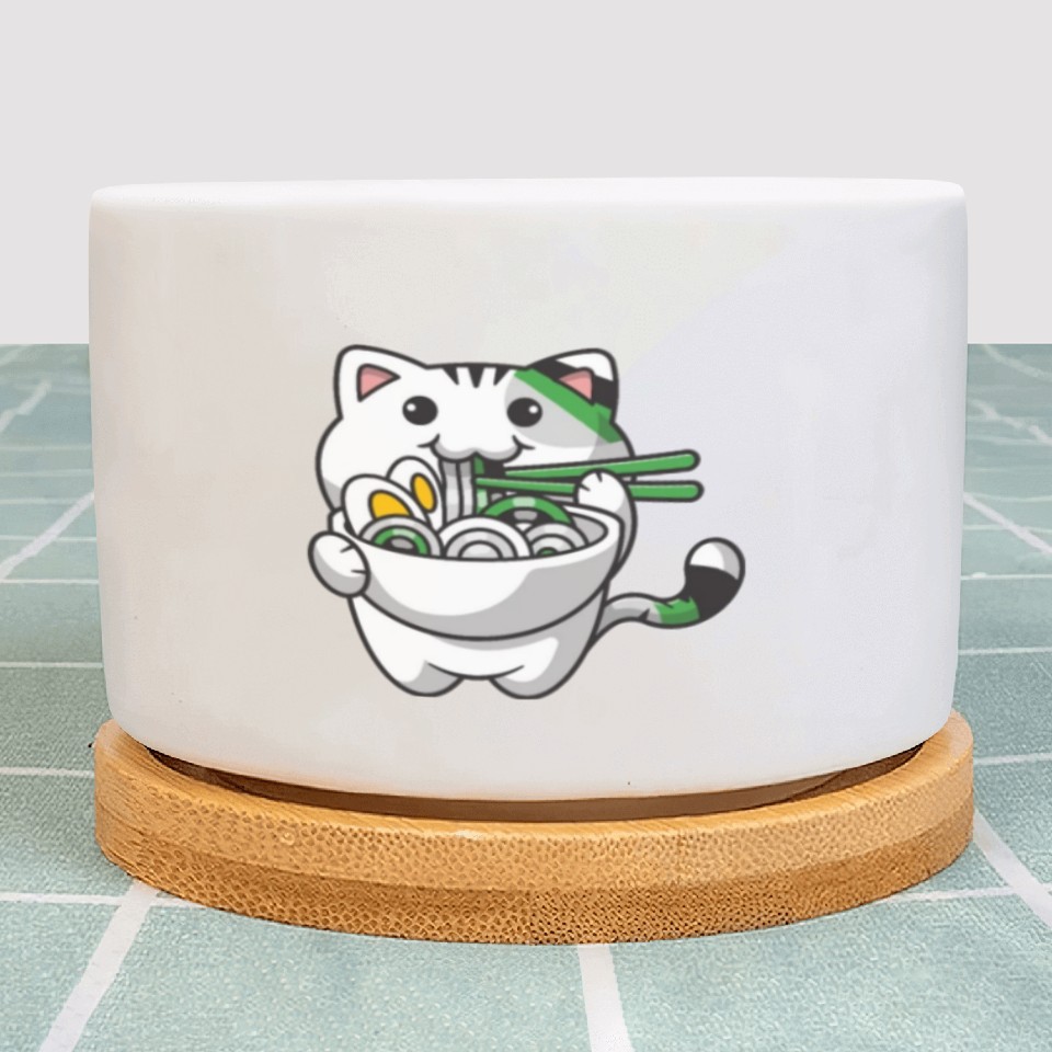 Demiromantic Pride Kawaii Cat Ramen Noodles Plant Pots