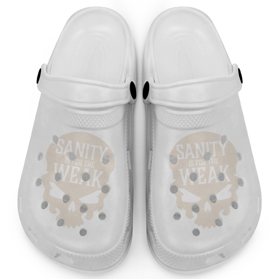 The item hot trend you're looking at is Demon Skull Sanity is for the Weak Clogs For Kids WHITE belong theme Clogs at Printblur