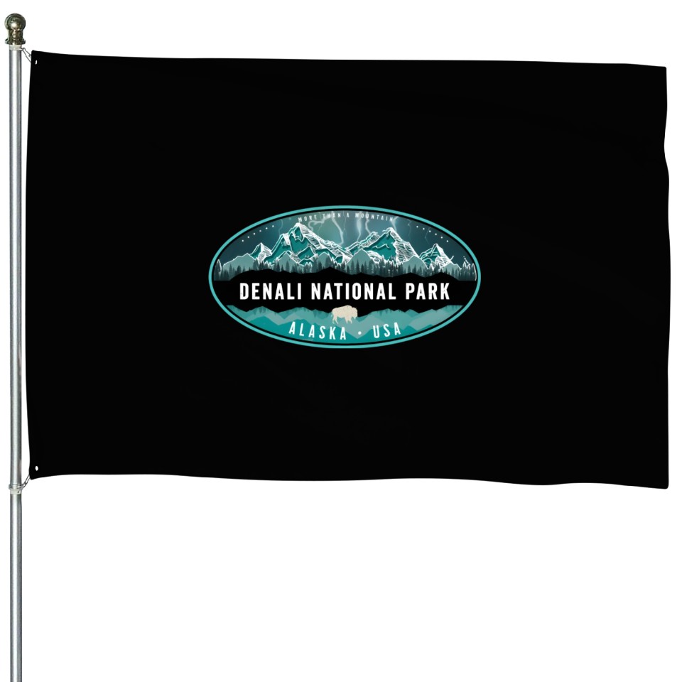 You're taking a peek at the product Denali National Park Alaska Hiking Camg House Flags For Black belong theme House Flags at Printblur