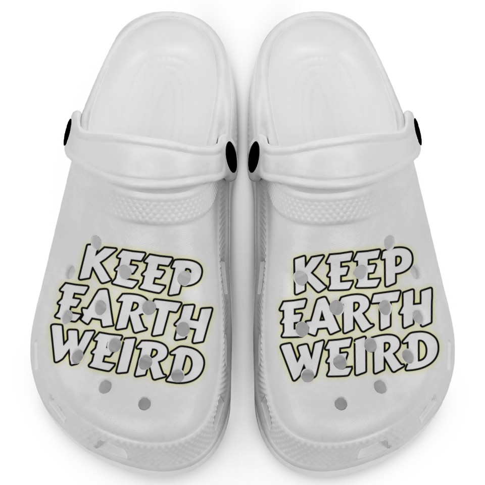 Own fascinating DESIGNKeep Earth Weird solid white humor Copy Clogs or see more Clogs products now from Printblur shop to enjoy your shopping time!