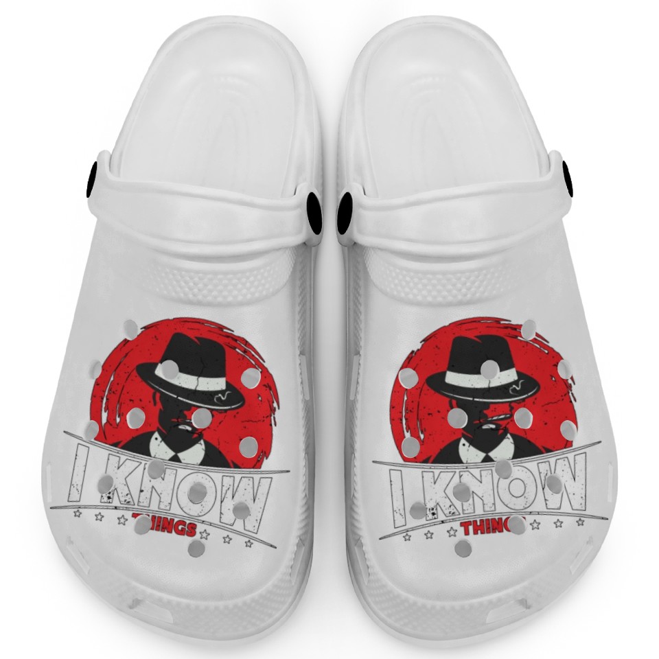The product unique design you searched for is Detective I Know Things Law Enforcement Sheriff Clogs For Kids WHITE belong theme Clogs at Printblur