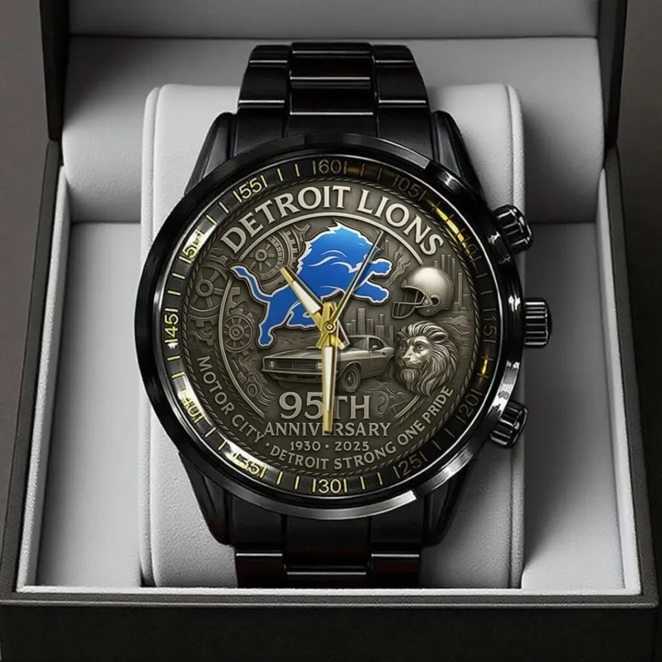 Buy stunning Detr*oit Lions 95th Anniversary 2025 Black Stainless Steel Watch or see more Calendar Steel Band Watch products at Printblur right now to receive many amazing discounts!